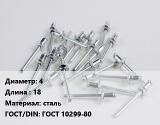 Заклепка 4х18 сталь ГОСТ: ГОСТ 10299-80, упаковка цена от 143.33 ₽ / шт, где купить, условия доставки в Туле и Тульской области