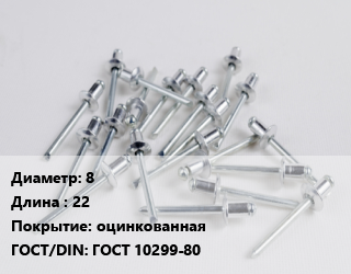 Заклепка 8х22 оцинкованная ГОСТ: ГОСТ 10299-80