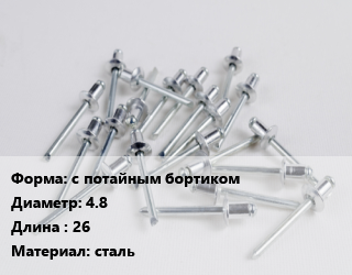 Заклепка с потайным бортиком 4.8х26 сталь, шт, вытяжная, для профнастила цена от 7.2 ₽ / шт, где купить, условия доставки в Туле и Тульской области