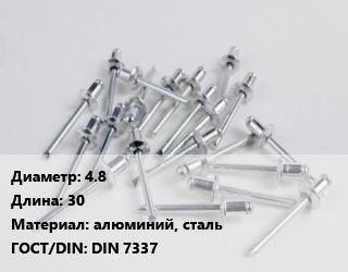 Заклепка 4.8х30 алюминий, сталь ГОСТ: DIN 7337