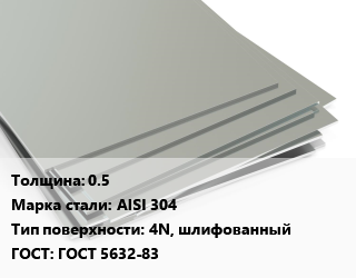 Лист нержавеющий 0.5 Сталь: AISI 304 Тип:4N, шлифованный ГОСТ 5632-83, х/к, в пленке цена от 403 793 ₽ / т, где купить, условия доставки в Туле и Тульской области