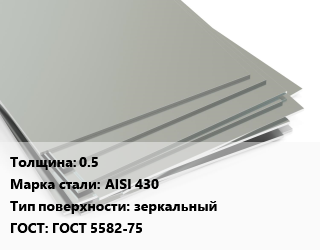 Лист нержавеющий 0.5 Сталь: AISI 430 Тип:зеркальный ГОСТ 5582-75