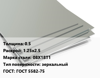 Лист нержавеющий 0.5 1.25х2.5 Сталь: 08Х18Т1 Тип:зеркальный ГОСТ 5582-75