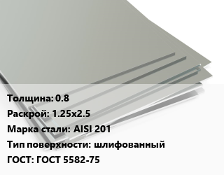 Лист нержавеющий 0.8 1.25х2.5 Сталь: AISI 201 Тип:шлифованный ГОСТ 5582-75, по запросу цена от 3 549 ₽ / т, где купить, условия доставки в Туле и Тульской области