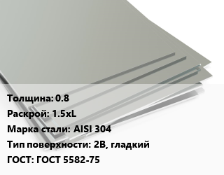 Лист нержавеющий 0.8 1.5хL Сталь: AISI 304 Тип:2B, гладкий ГОСТ 5582-75