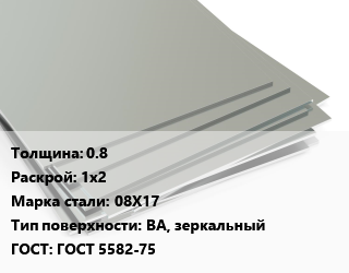 Лист нержавеющий 0.8 1х2 Сталь: 08Х17 Тип:BA, зеркальный ГОСТ 5582-75, х/к цена от 132 586 ₽ / т, где купить, условия доставки в Туле и Тульской области
