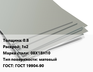 Лист нержавеющий 0.8 1х2 Сталь: 08Х18Н10 Тип:матовый ГОСТ 19904-90