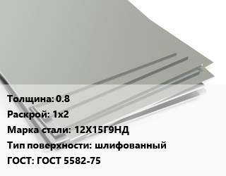 Лист нержавеющий 0.8 1х2 Сталь: 12Х15Г9НД Тип:шлифованный ГОСТ 5582-75