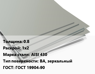 Лист нержавеющий 0.8 1х2 Сталь: AISI 430 Тип:BA, зеркальный ГОСТ 19904-90