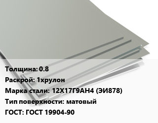 Лист нержавеющий 0.8 1хрулон Сталь: 12Х17Г9АН4 (ЭИ878) Тип:матовый ГОСТ 19904-90, х/к, по запросу цена от 195 861 ₽ / т, где купить, условия доставки в Туле и Тульской области