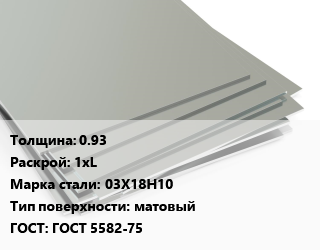 Лист нержавеющий 0.93 1хL Сталь: 03Х18Н10 Тип:матовый ГОСТ 5582-75