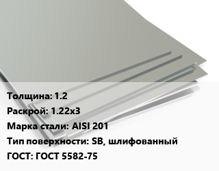 Лист нержавеющий 1.2 1.22х3 Сталь: AISI 201 Тип:SB, шлифованный ГОСТ 5582-75, в пленке, по запросу цена от 212 692 ₽ / т, где купить, условия доставки в Туле и Тульской области
