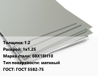 Лист нержавеющий 1.2 1х1.25 Сталь: 08Х18Н10 Тип:матовый ГОСТ 5582-75, шт цена от 8 713 ₽ / т, где купить, условия доставки в Туле и Тульской области