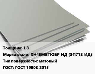 Лист нержавеющий 1.8 Сталь: ХН45МВТЮБР-ИД (ЭП718-ИД) Тип:матовый ГОСТ 19903-2015
