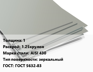 Лист нержавеющий 1 1.25хрулон Сталь: AISI 430 Тип:зеркальный ГОСТ 5632-83