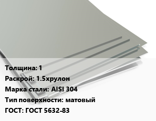 Лист нержавеющий 1 1.5хрулон Сталь: AISI 304 Тип:матовый ГОСТ 5632-83 цена от 215 273 ₽ / т, где купить, условия доставки в Туле и Тульской области