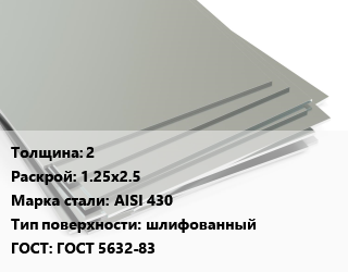Лист нержавеющий 2 1.25х2.5 Сталь: AISI 430 Тип:шлифованный ГОСТ 5632-83, шт, х/к цена от 10 226 ₽ / т, где купить, условия доставки в Туле и Тульской области