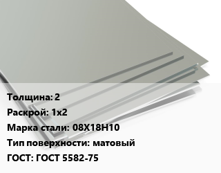 Лист нержавеющий 2 1х2 Сталь: 08Х18Н10 Тип:матовый ГОСТ 5582-75