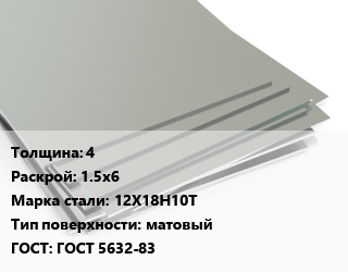 Лист нержавеющий 4 1.5х6 Сталь: 12Х18Н10Т Тип:матовый ГОСТ 5632-83