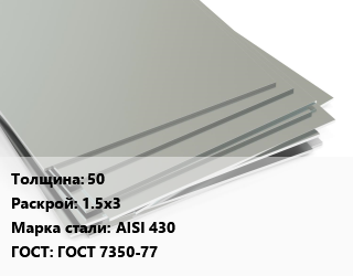 Лист нержавеющий 50 1.5х3 Сталь: AISI 430 ГОСТ 7350-77