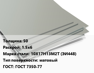 Лист нержавеющий 50 1.5х6 Сталь: 10Х17Н13М2Т (ЭИ448) Тип:матовый ГОСТ 7350-77, по запросу цена от 508 305 ₽ / т, где купить, условия доставки в Туле и Тульской области